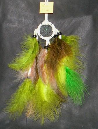 This full feathered dream catcher has a 4-inch web and the feathers drape down a full 6-inches form the bottom of the web.